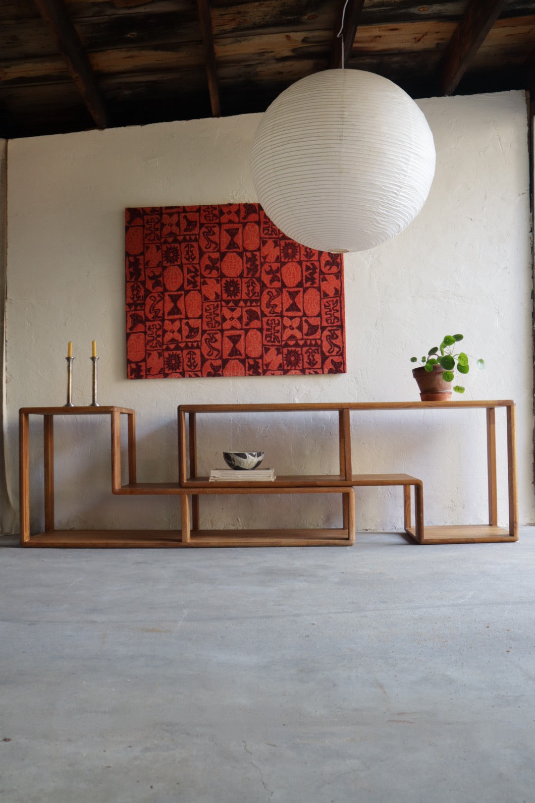 1970s Oak 2 Piece Modular Console. 2 separate pieces can be pushed together, expanded or used as a corner unit.