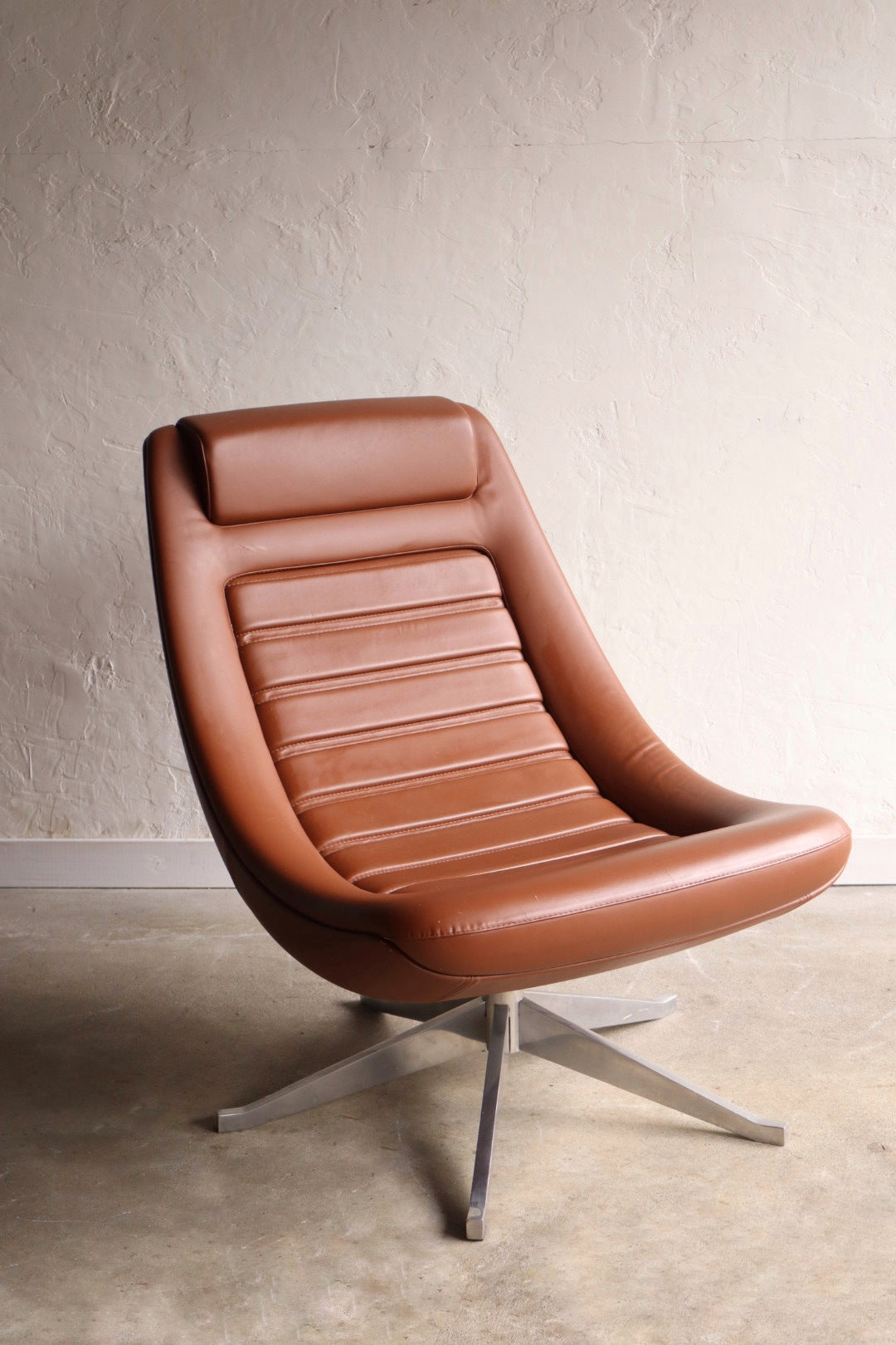 Leather lounge chair with aluminum base designed by Pio Manzú for Alias. Originally designed as the “physiological armchair” in 1967 by Manzú for La Rinascente, relaunched in 2011 by Alias as the Manzú lounge chair. Made in Italy